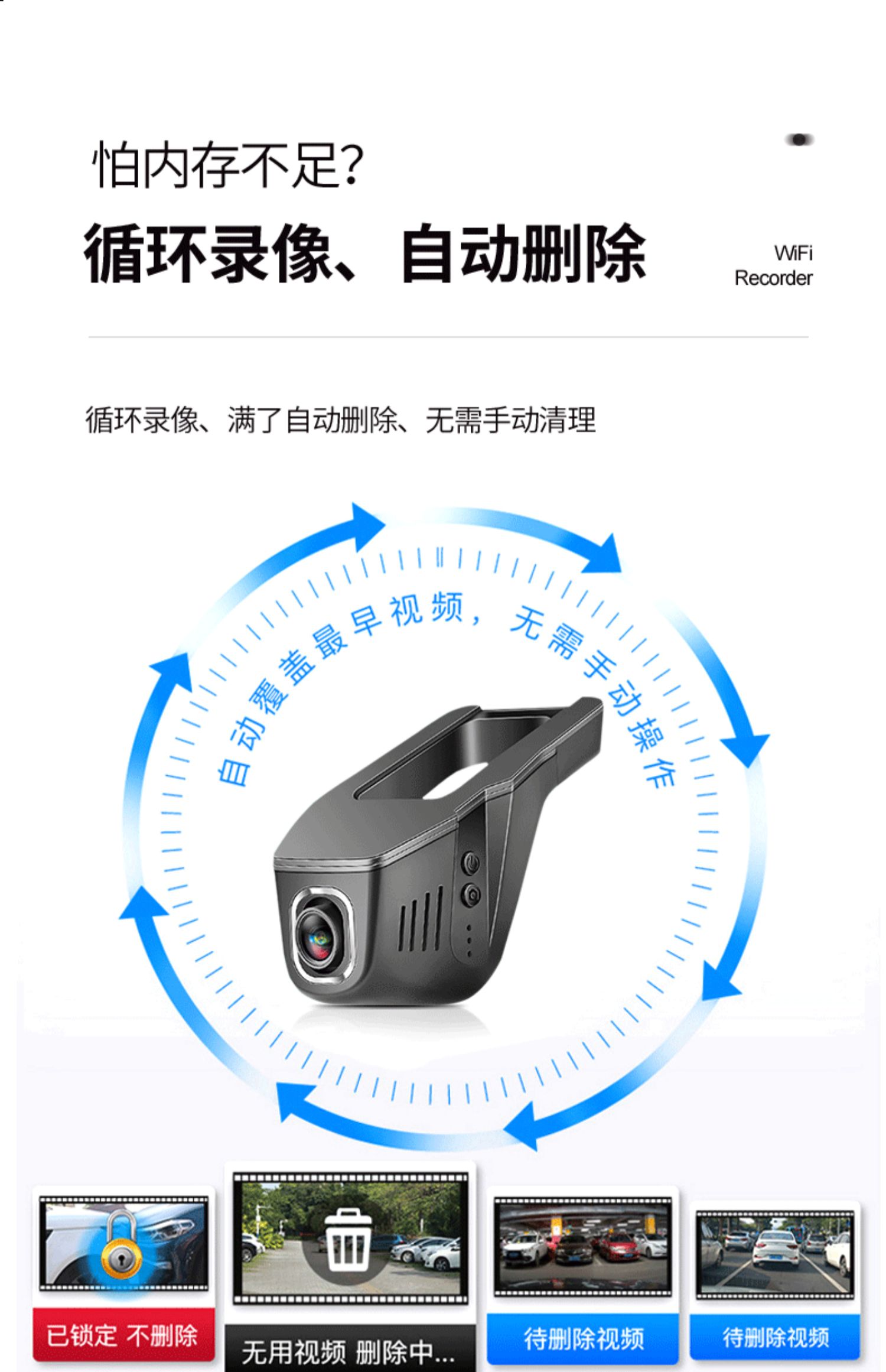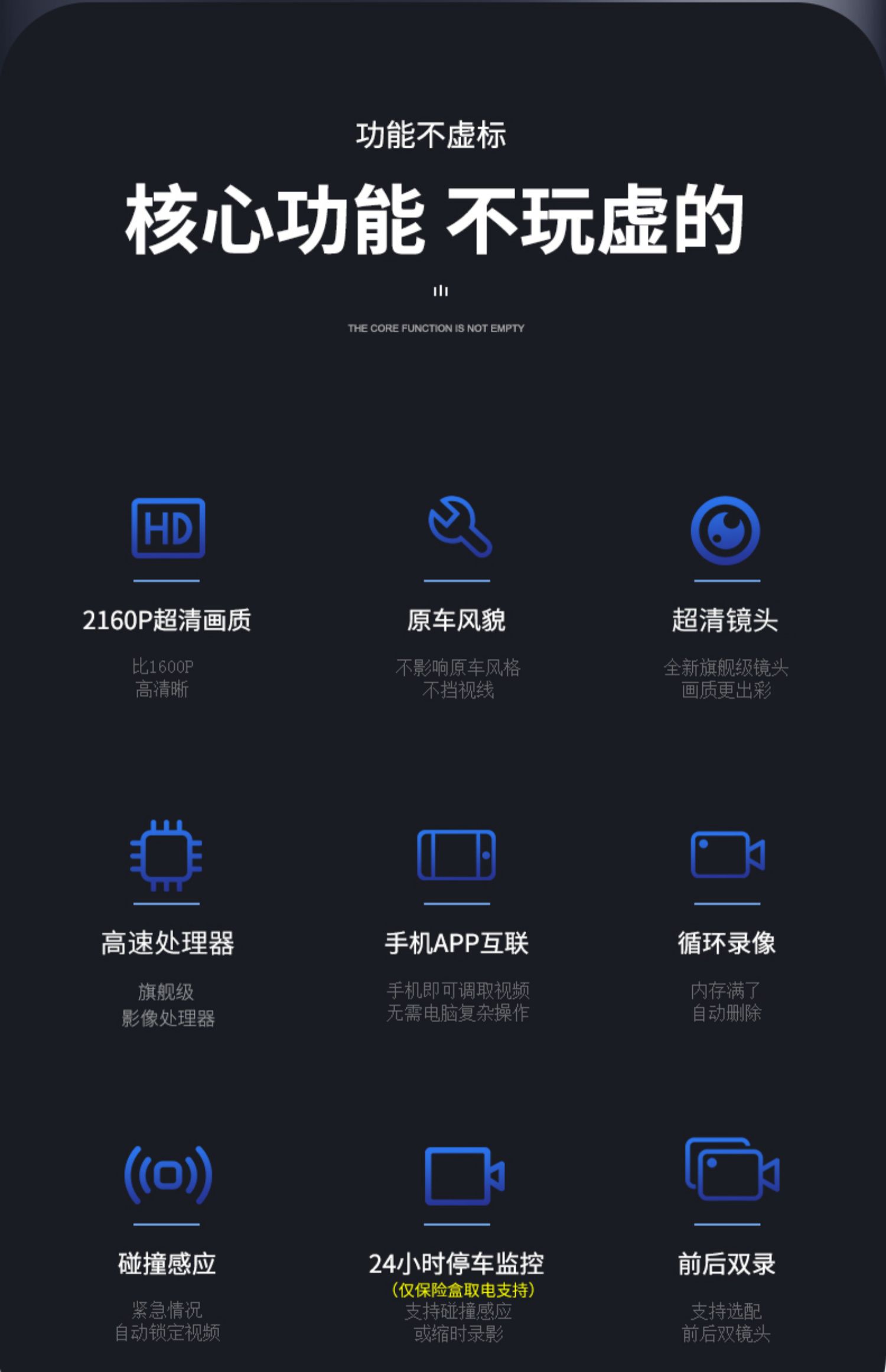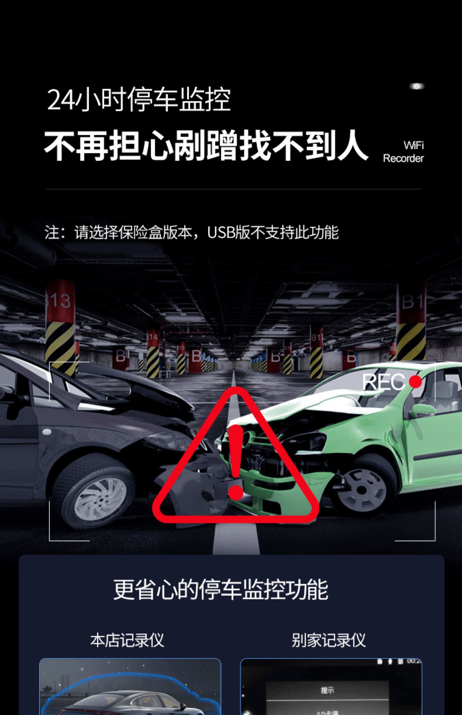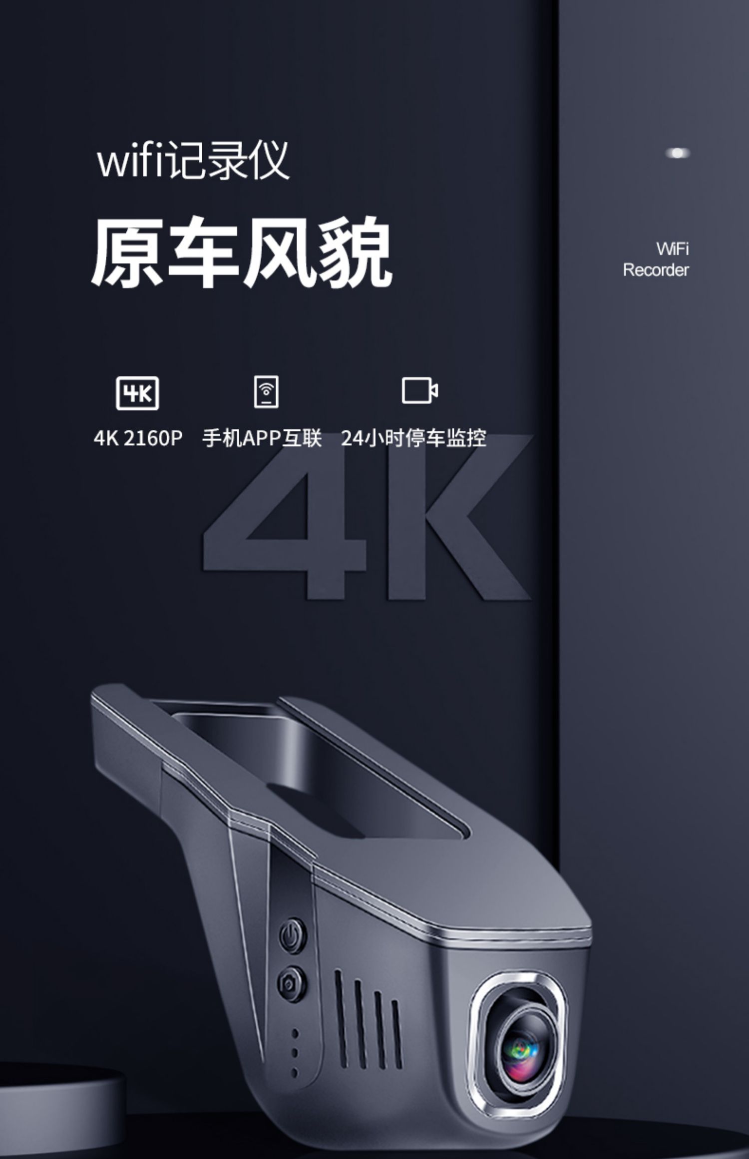 汽车行车记录仪停车监控24小时高清夜视前后双录手机互联载摄像头