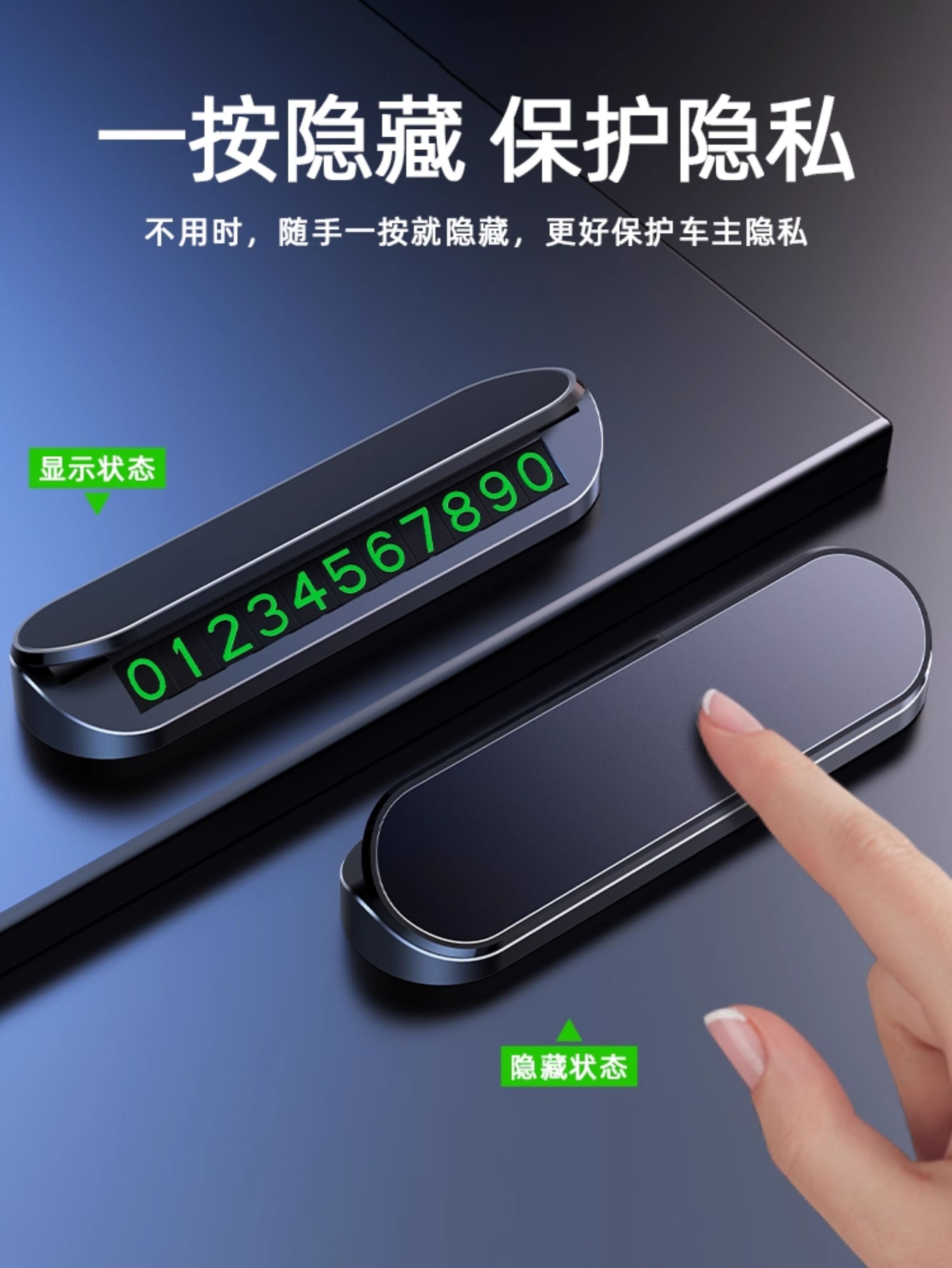 首页> 汽车装饰> 挪车电话临时停车牌手机留号移车牌卡内载车上2025新款高级感摆件